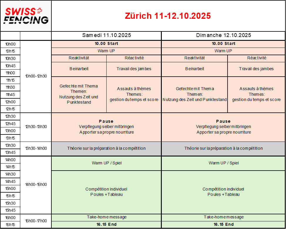 Swiss Fencing a le plaisir d’inviter ses jeunes tireuses et tireurs U17 et U20 au stage de la relève à Zürich.